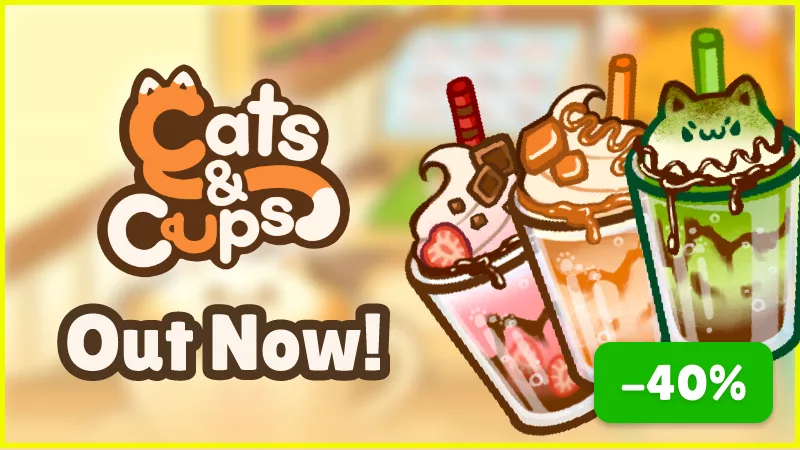 Cats & Cups is officially out on Steam with a limited-time 40% launch discount! 🎉