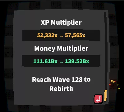Also, Rebirthing can no longer be done just by getting to level 150, but you also need to r each a certain wave depending on what Rebirth you’re on. But don’t worry! Reaching higher Rebirths is way more manageable than before now, thanks to all the bonuses you’ll be getting along the way.