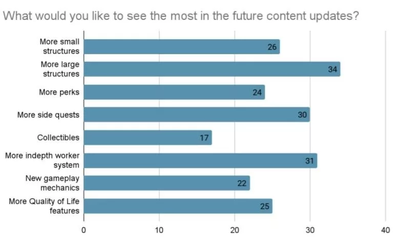 • Another point that received a lot of votes is making the workers systems more complex. We will be improving on this aspect in almost all future updates adding new mechanics, productions buildings and options to use workers for other tasks.
