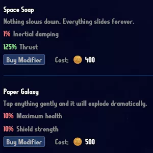Instead of perks (which are mostly replaced by crew training), you now find a modifiers tab in the Armory. Modifiers now apply to all ships , not just yours, and can change the game dramatically, introducing all kinds of new and questionable challenges.