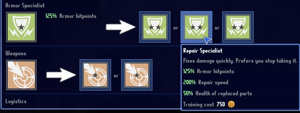 This update also overhauls the meta progression across runs. You can now use your bounty to train your crew and permanently improve the performance of your ship. For example, your armorer can increase armor hit points or specialize in a certain type of shield. Every training choice matters.