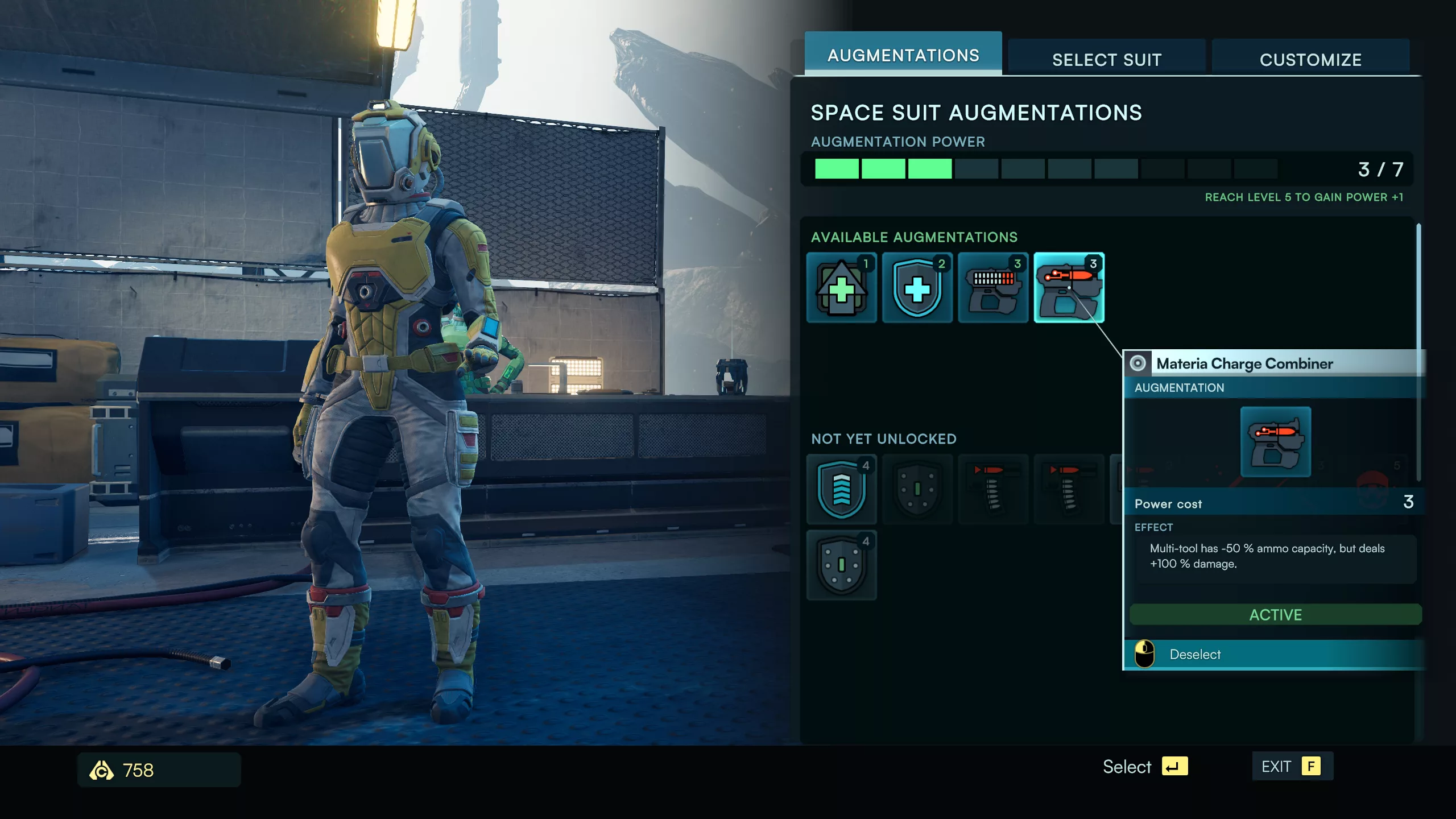 The higher your character level is, the more points you will have to spend. This means we might increase the level cap beyond 10. Augments will also unlock through suits, helmets and completing Ventures etc.