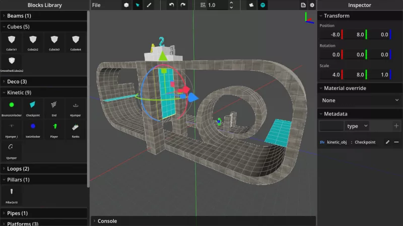 – Select mode : gizmo et inspecteur pour un placement plus précis, des textures personnalisées et des métadonnées