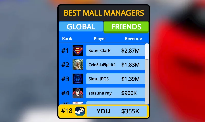 Vous pouvez désormais affronter d’autres gérants dans Mall Simulator ! 🌍