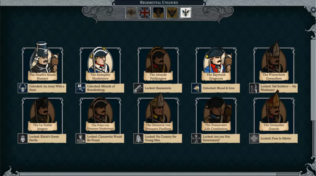 Split the “Unlocks” regiment into two separate buttons so you can view achievements or view the aforementioned regiment gallery