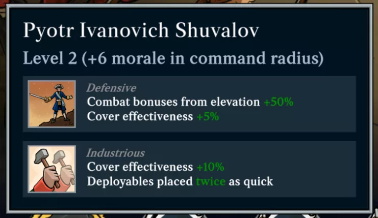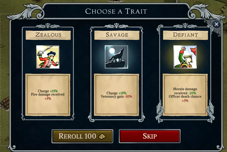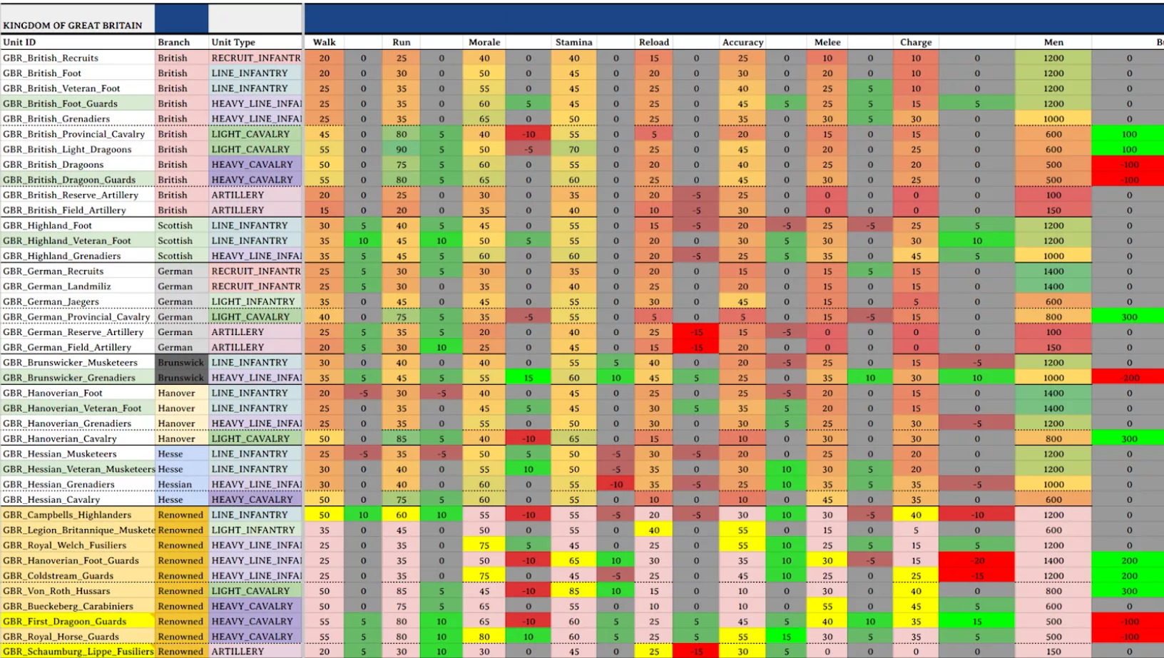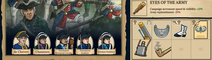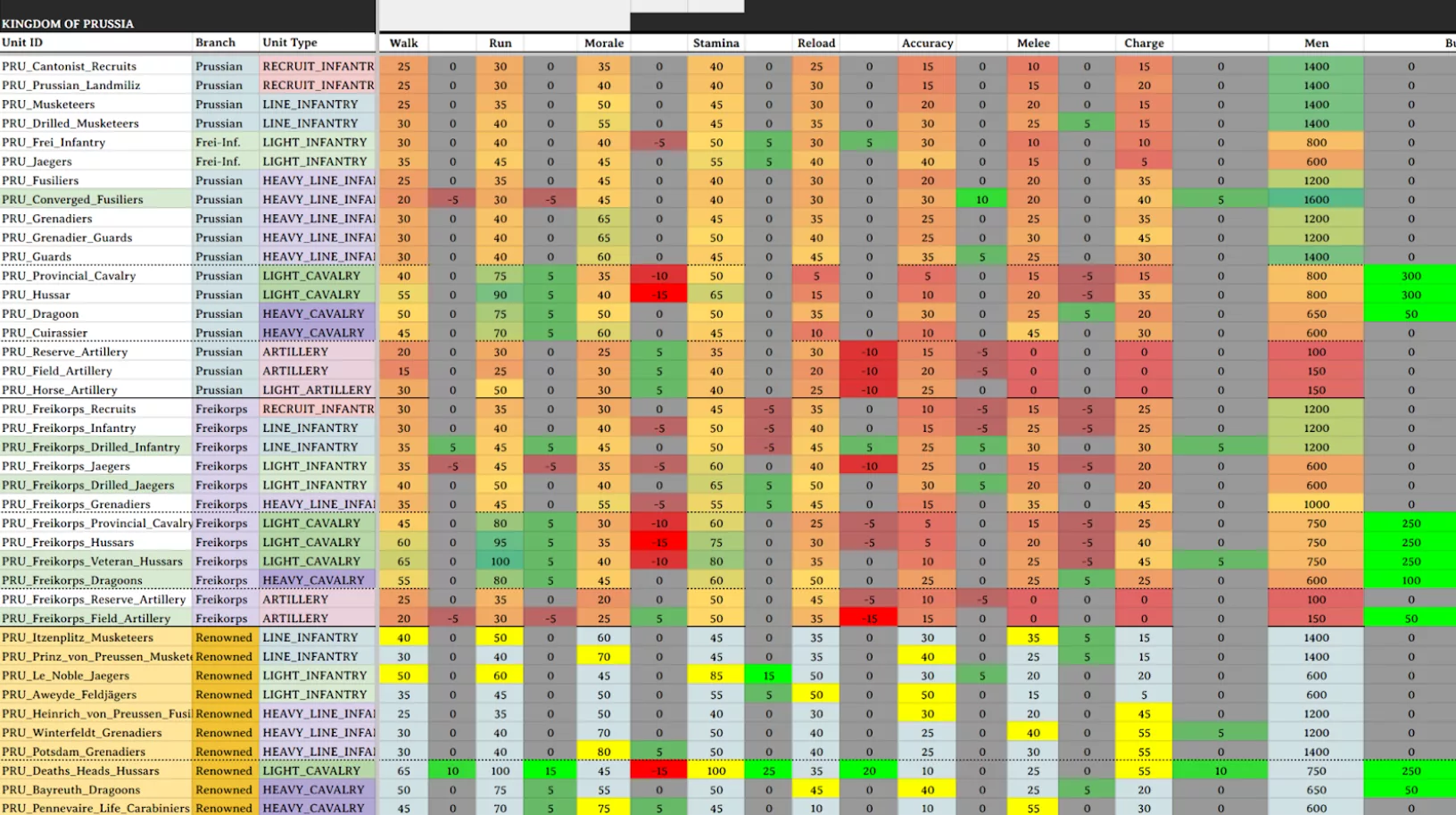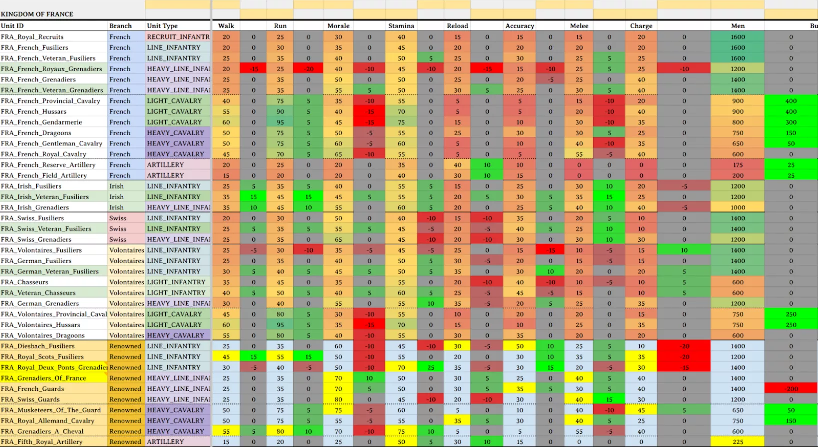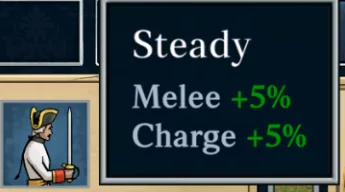 – Overhaul done to officer traits/doctrines, you can now dynamically modify different categories of effects like modifying stamina or combat effectiveness and pair it with many new interchangeable conditions. For example, if you wanted to modify stamina for only light cavalry, or modify additional damage a unit takes from shattering but only for light infantry, etc you can now make many of the effects conditional in a way that wasn’t possible before.