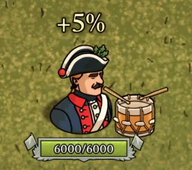 – Here’s a closeup of the new mustering stance. The drum is animated and the percentage chance that you get a new recruit unit appears over your head for each day of mustering. The percentage will increase with time.