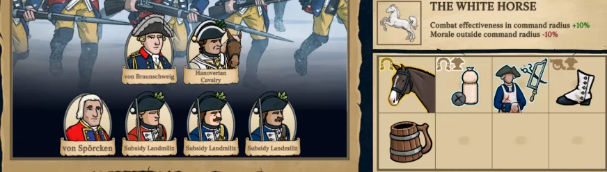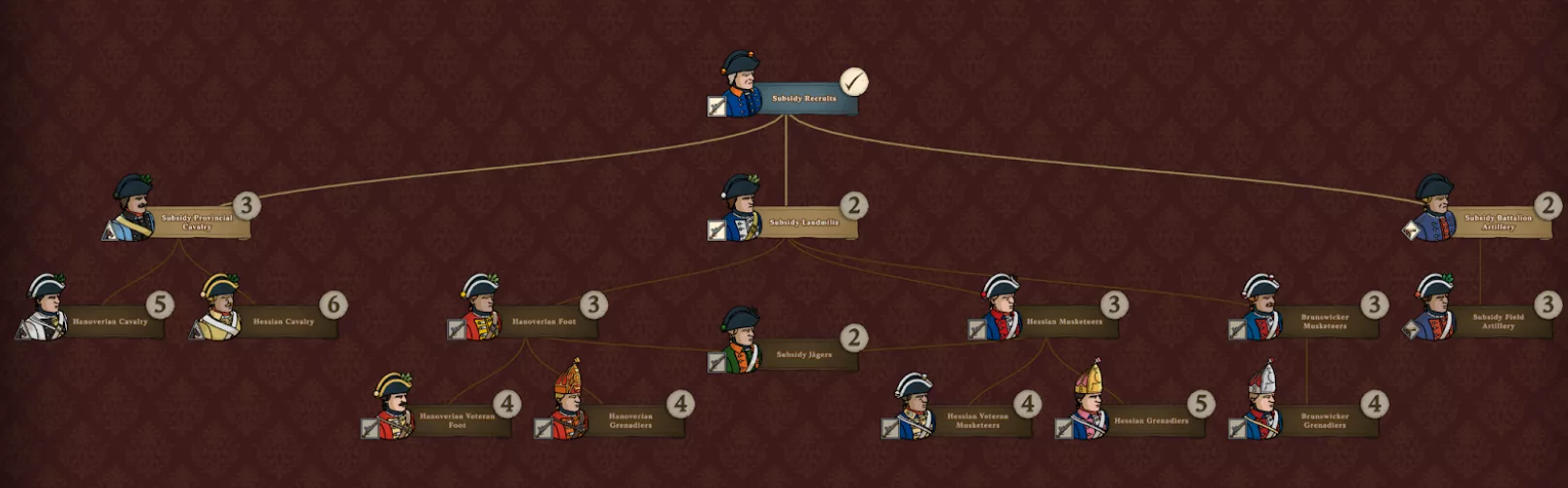 – Finally we have the Auxiliary corps. They gain a free random (weighted) HRE unit every time they buy an officer at a settlement. So consider the noble estates to be your casinos and you can buy officers to see what random unit you’re going to get. The malus is that officers and units are 200% more expensive (meaning 3x the cost) and so you need to rely on finding affordable officers and good luck to get your units.