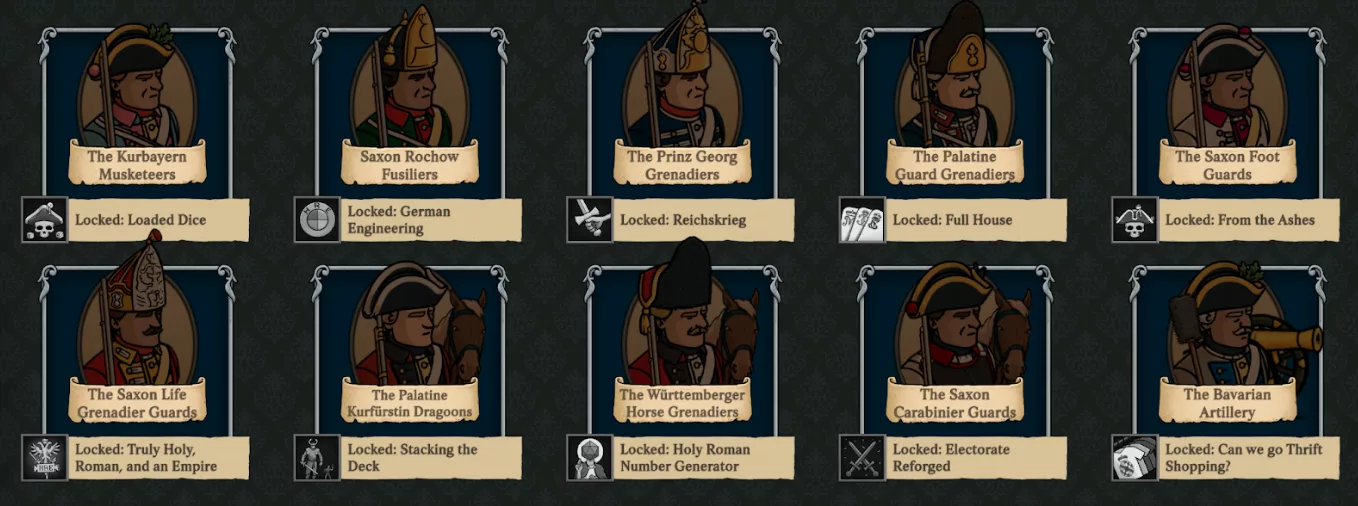 – The HRE also has the standard 10 renowned units which are unlocked via achievements.
