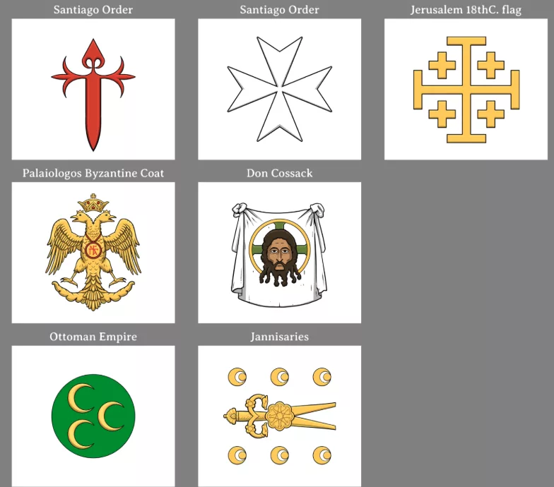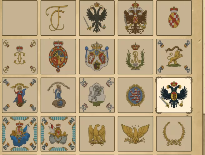 – Here are the HRE flag patterns and emblems. There are patterns and emblems representing Swabians, Franconians, Wurttembergers, Palatines, Saxons, and Bavarians.