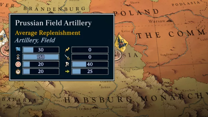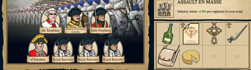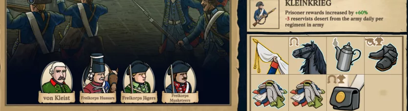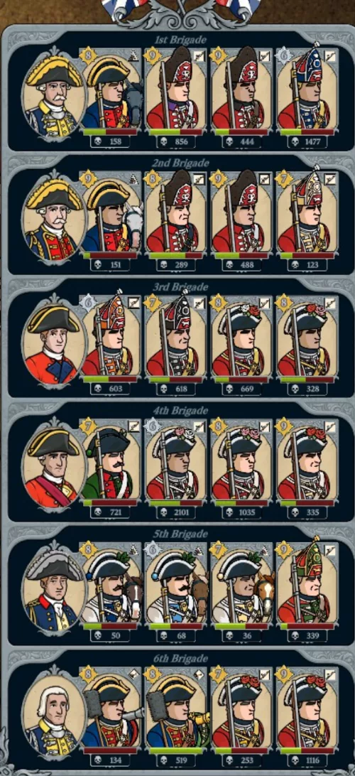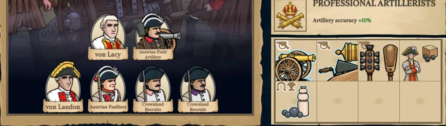 – AI no longer brings as much artillery in with this 1st brigade for boss battles (brigades that contain a renowned unit will bring artillery less often). Previously there were 6/10 possible boss battle compositions per nation that contained artillery and now it’s 4/10. Furthermore, if the AI ever brings an extra artillery piece in a brigade containing a renowned unit it will only be a battalion artillery and not field artillery.
