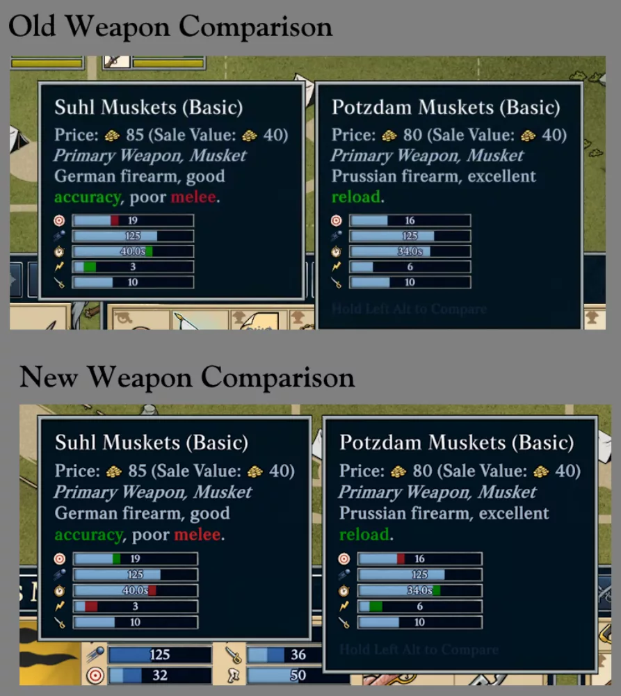 4. We wanted to slow down combat a little, as in the late-game the unit stats could end up getting so high that battles were a little too decisive. You should notice just a little bit less accuracy and reload skill being given from many of the items and base stats. You’ll also notice the melees and charges are a little slower and less decisive- before they felt a little arcadey with some melees ending in just a couple seconds. In January I’ll be taking a look at a lot of the doctrines and balancing them out a bit better as well (improving the lackluster ones and rebalancing the overpowered ones).