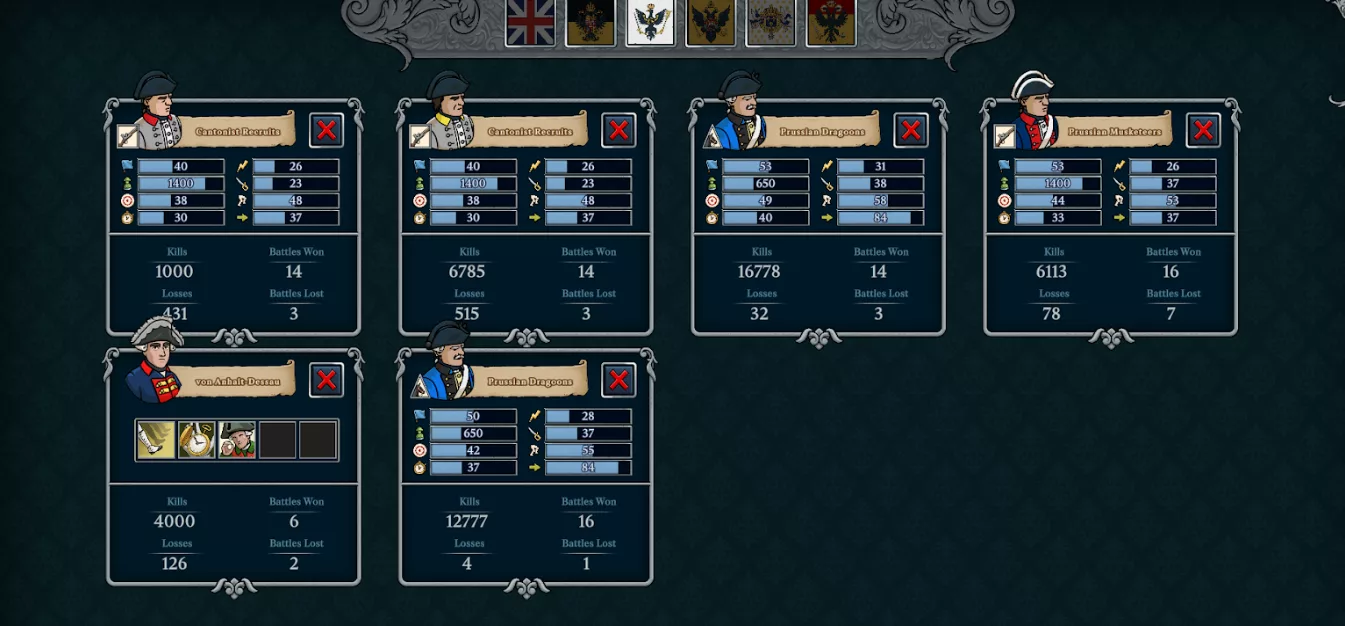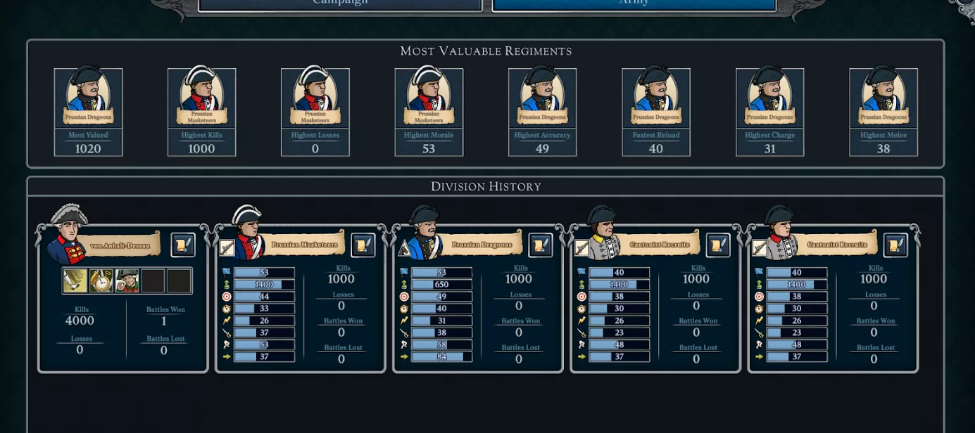 – New end-game stat display which is much larger than previously. Gives you more details on your units’ stats and now lists ALL units and officers in your army when you finished the game. Officers now display what traits they had and units display the exact stats they had.