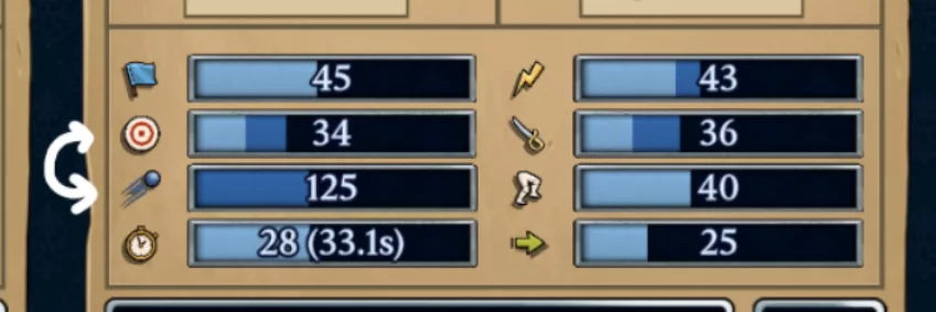 – Fixed the stat display when recruiting units. It showed accuracy and then range, whereas in camp it showed range and then accuracy. So we’ve swapped these around on the recruitment screen to make it consistent with camp. You can see the incorrect version in the image below, the white arrows indicating that they needed to be flipped.