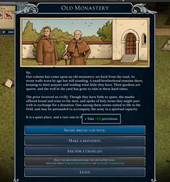 – Added new “Old Monastery” encounter where you can get food, a chaplain, or religious items.