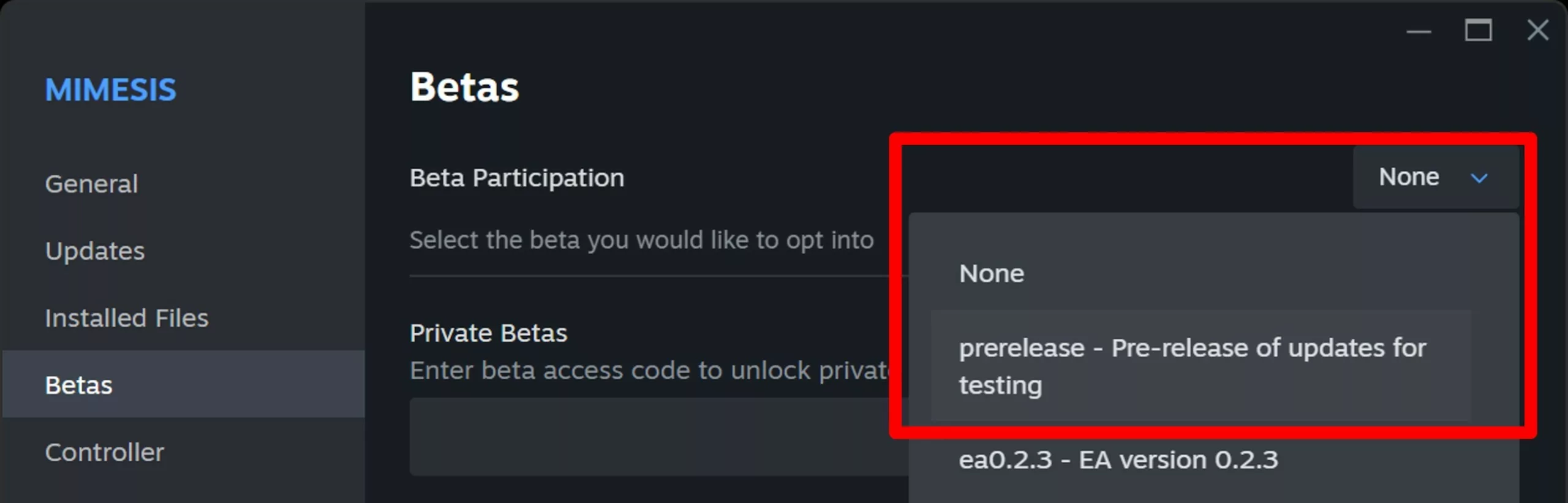 • Manage → Properties → Betas → Beta Participation → Select prerelease