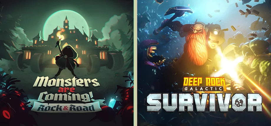 We’re not done! You can also get a fantastic Deep Rock Galactic: Survivor & Monsters are Coming! Rock & Road Bundle which we’re affectionately calling the ‘Deep Rock & Road’ Bundle! We’re absolutely honored to be working with our friends at Funday to bring you this tantalising bundle from launch as well. Deep Rock Survivor has been a mega hit this year and the team have really set the standard for the future of the genre, so we’re delighted to be working together!