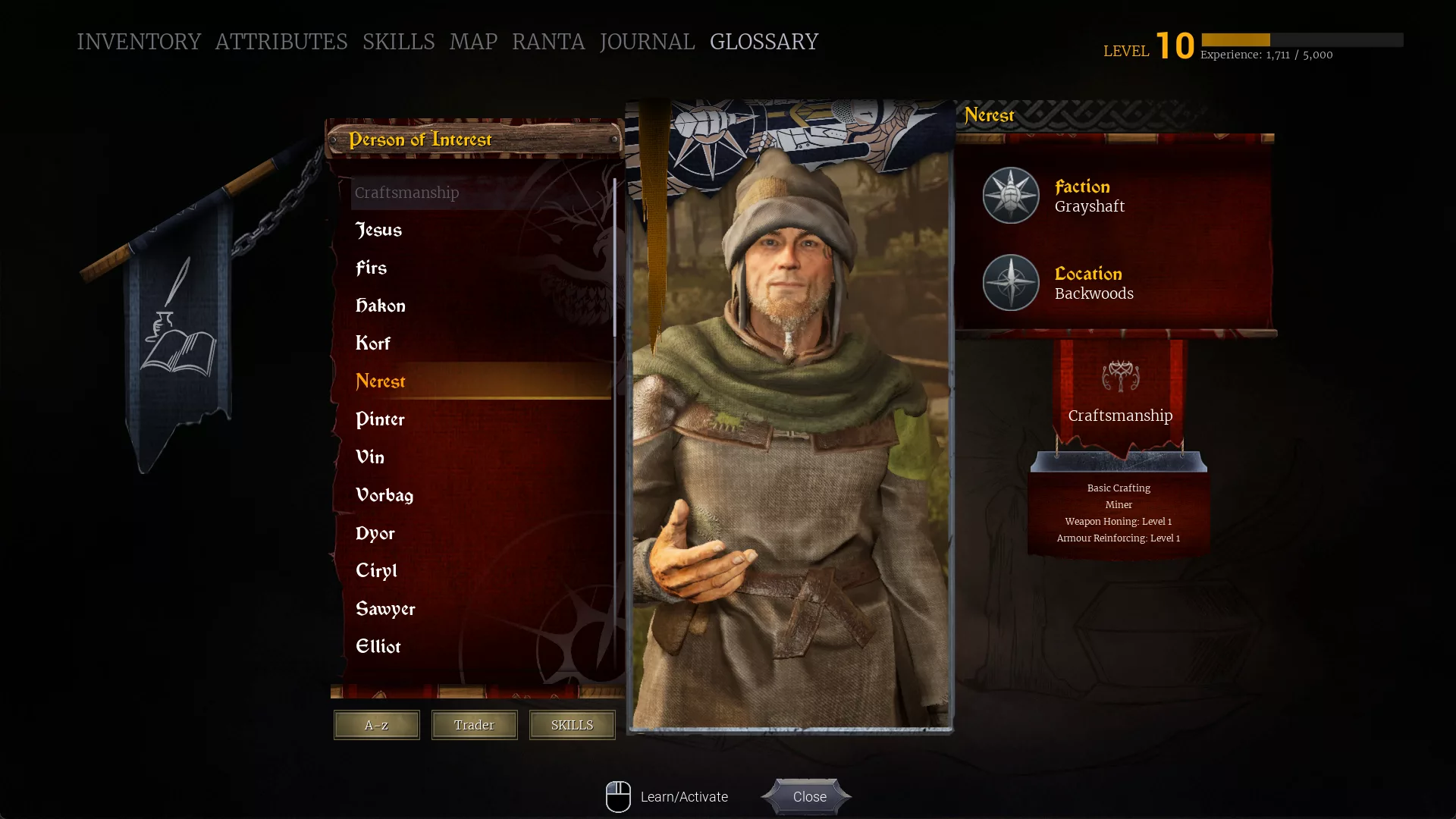 The Characters section accumulates information about the locations and faction affiliations of the Grayshaft denizens you meet. It will indicate whether a character is a trader or a trainer, as well as the exact skills they teach. Talking to an NPC once is enough to add them to the list. Naturally, you can also filter the list by various parameters.