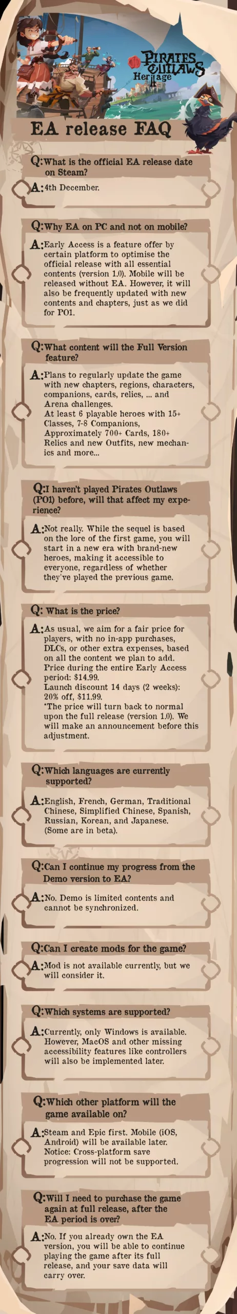 Pirates Outlaws 2: Heritage : COMING IN 1 DAY | EA RELEASE FAQ
