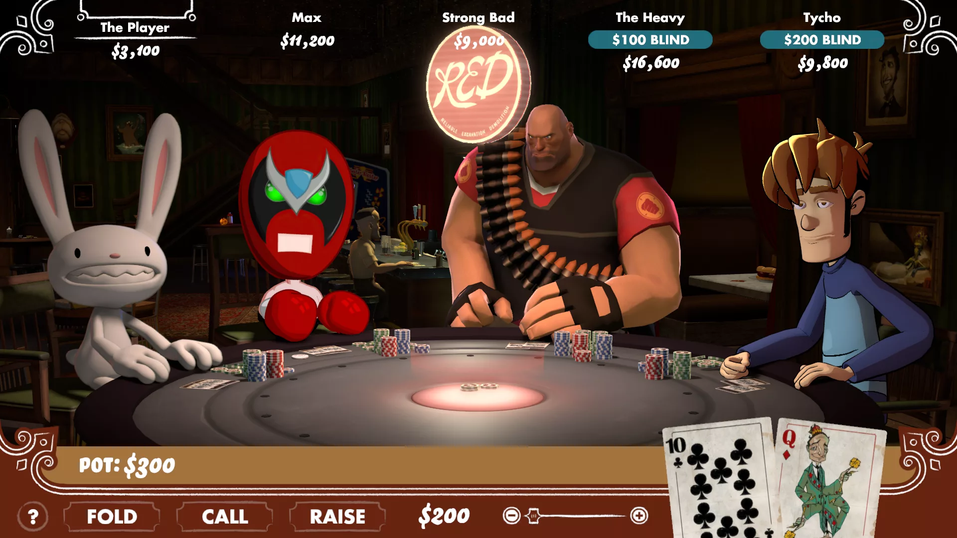 The big news here is that you can finally get Poker Night’s TF2 items without dealing with a scalper. When a player offers up their huge gun (the Heavy), swanky watch (Tycho), gun and badge (Max), or dangerous—err, sorry, we meant Dangeresque —sunglasses (Strong Bad) as collateral and you bust them out, you’ll win their beloved item… and then you can use those items in Team Fortress 2!
