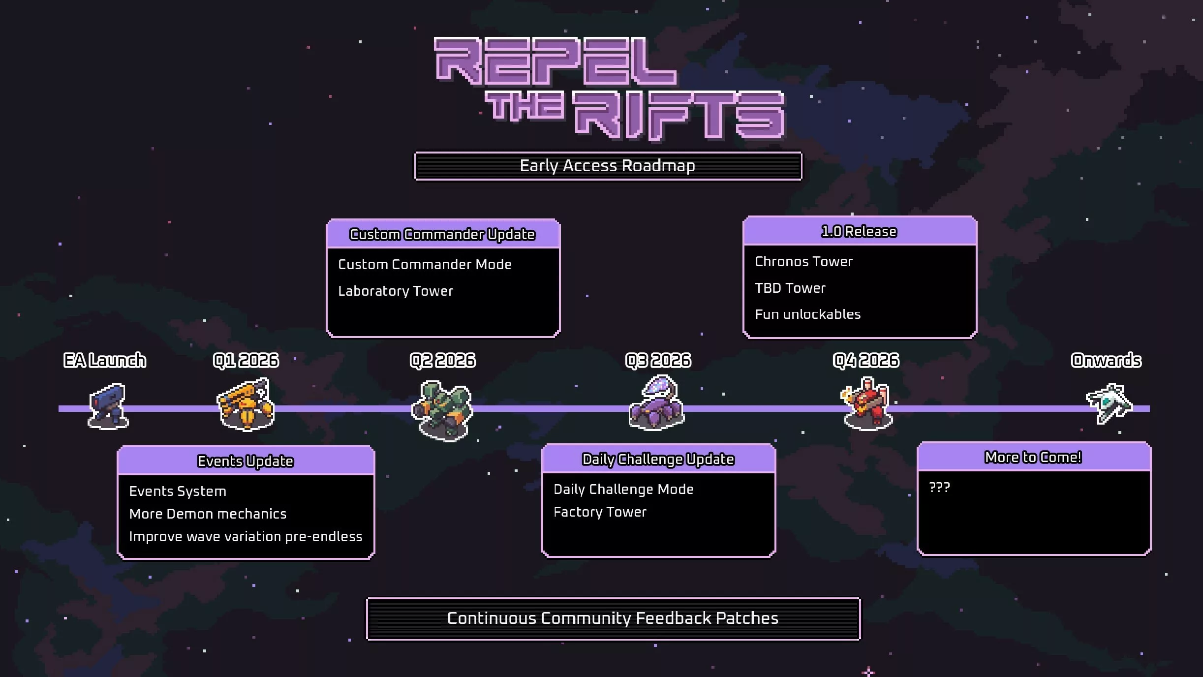 Repel the Rifts is a roguelite tower defense game set on an alien world. As a Commander of a mining expedition gone awry, you must defend against relentless waves of inter-dimensional creatures emerging from mysterious rifts. Survive the nights, survey further into the unknown and track down the source of these rifts.