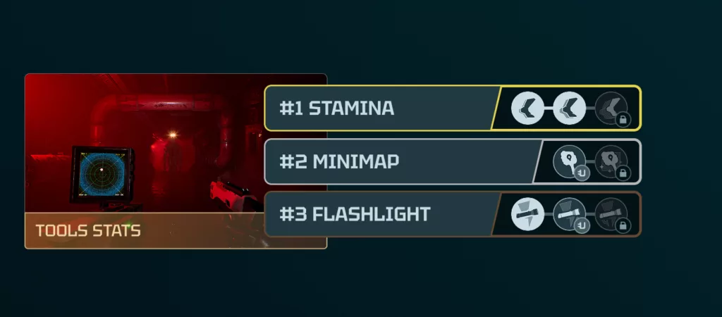 A Few Insights on In-Game Behavior When we looked at which upgrades you purchased the most with your Ucredits , we found that Stamina was by far the most popular, followed by the Minimap upgrades , and then the Flashlight improvements .