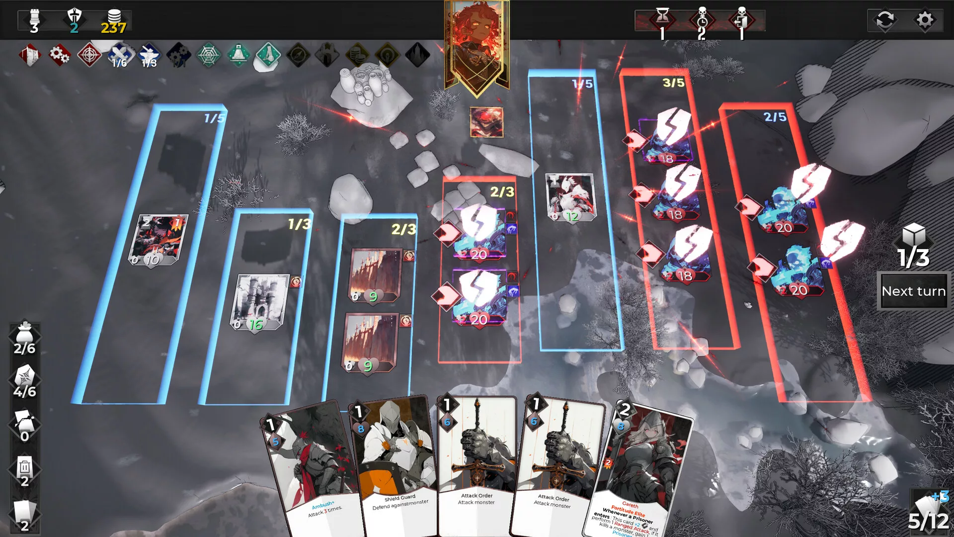 Des vagues d'ennemis incessants menacent votre précieuse base. Formez votre deck, choisissez vos cartes et affrontez ces assaillants dans des combats stratégiques où chaque décision compte. Votre but ultime est de briser le cycle de cet hiver éternel et de restaurer un semblant de vie dans ce monde gelé. Chaque partie est un nouveau défi pour mettre fin à l'oppression du froid.
