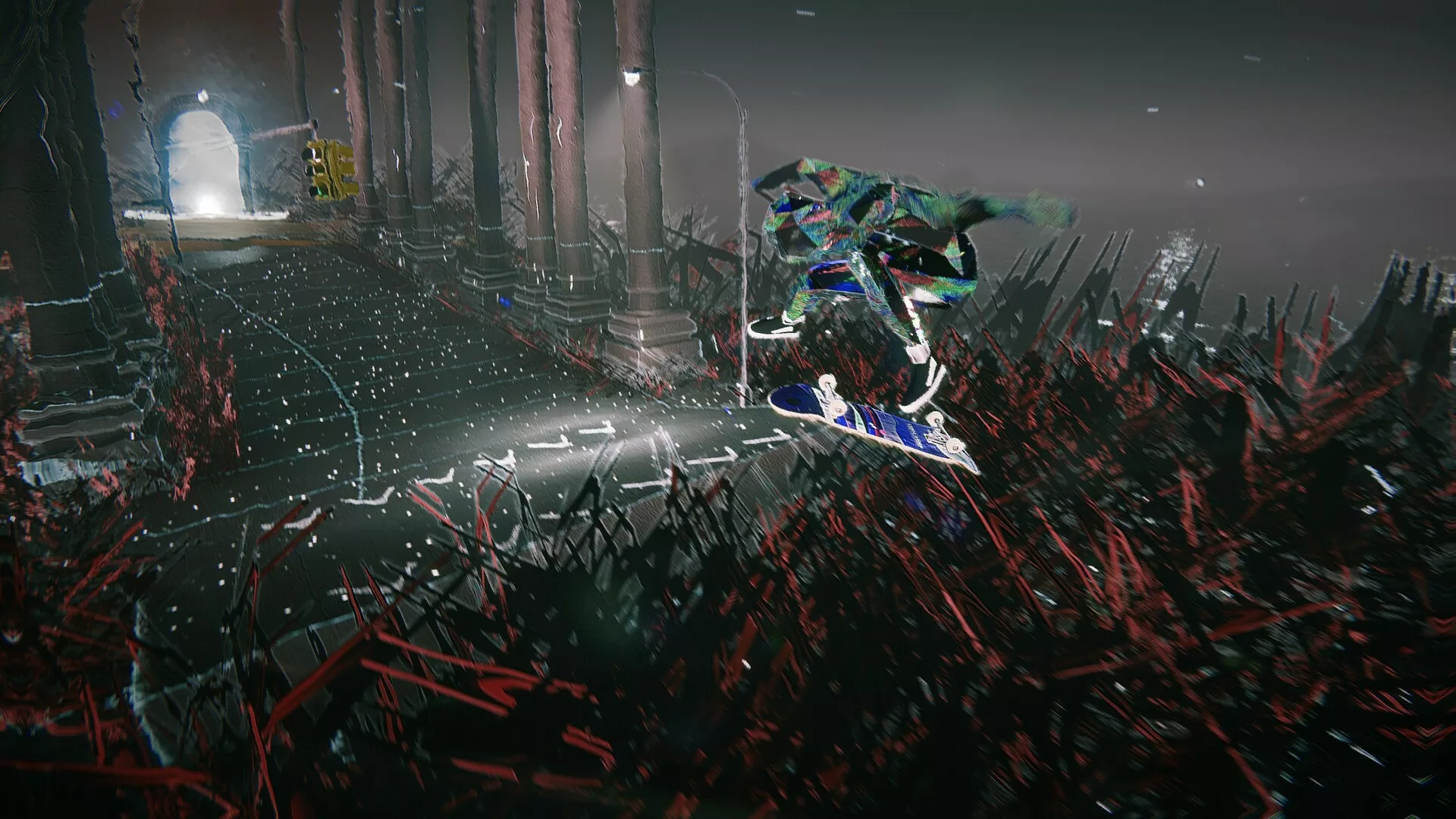 Tame your skateboard to navigate through the desolate landscapes of the Barrens, a world filled with ash and smoke. Perform fluid sequences of ollies, kickflips and grinds while exploring this apocalyptic environment. Every move counts as you slide across varied surfaces, searching for the best paths to progress in your hopeless quest.